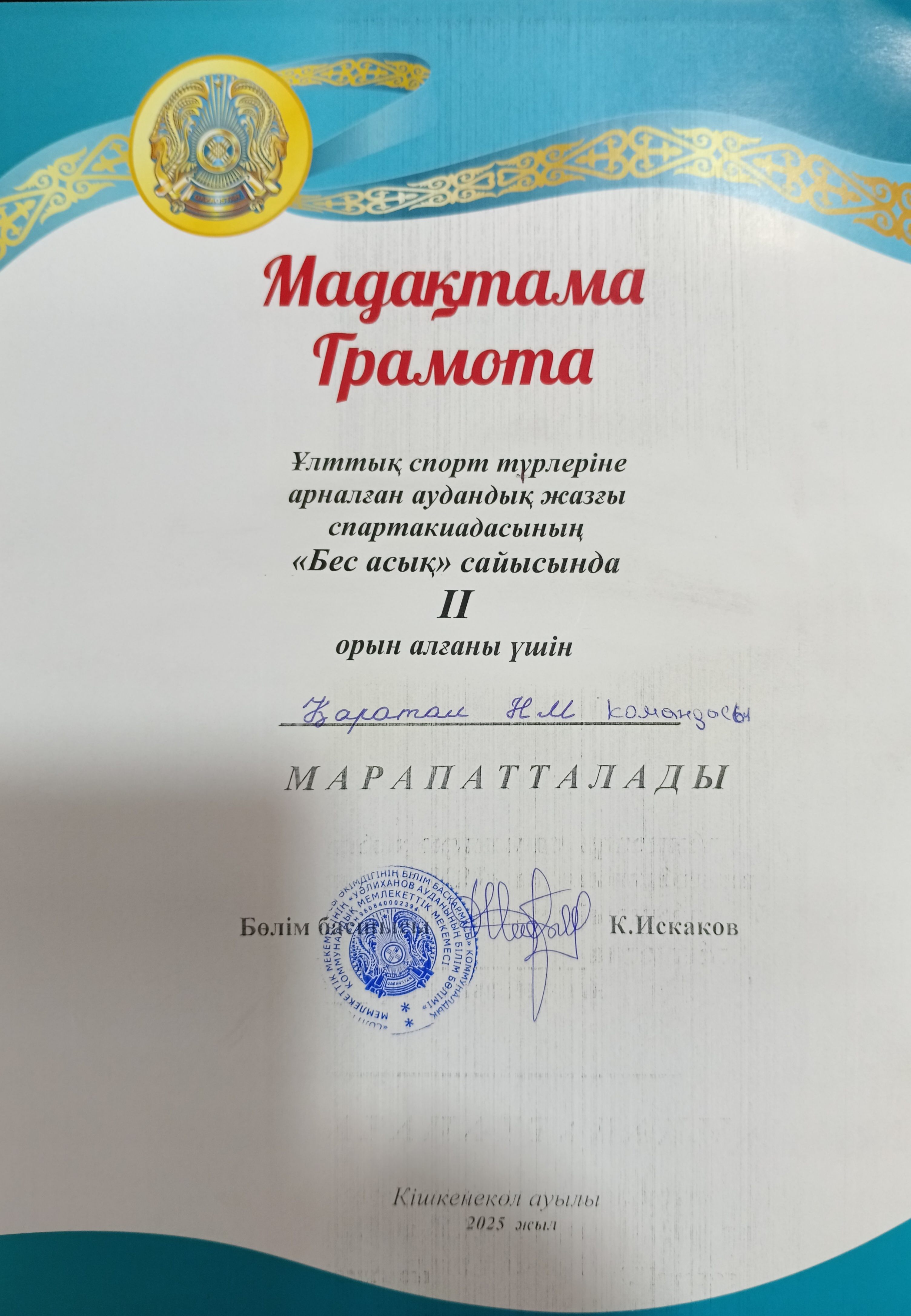 "Бес асық" аудандық жазғы спартакиада сайысында ІІ орын